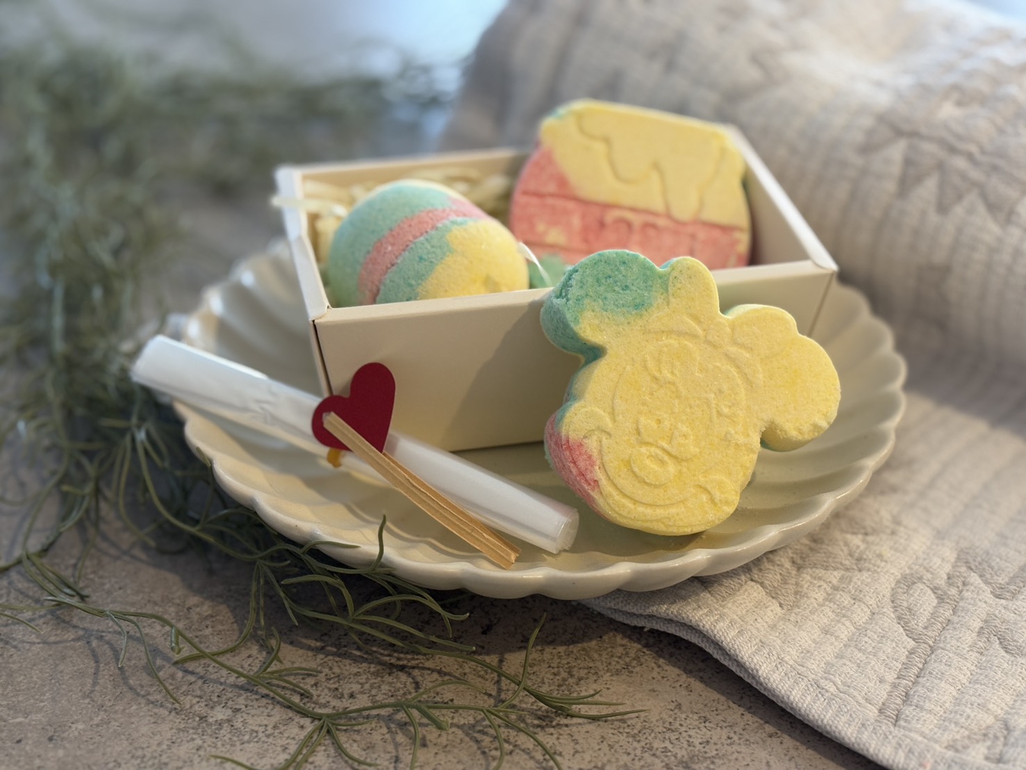 好きな色や香りを選んで、自分だけのオリジナルバスボムを作ろう!粉をまぜて形を作るだけなので、小さなお子さまでも楽しく体験できます。スタッフがそばでサポートするので、はじめてでも安心です。